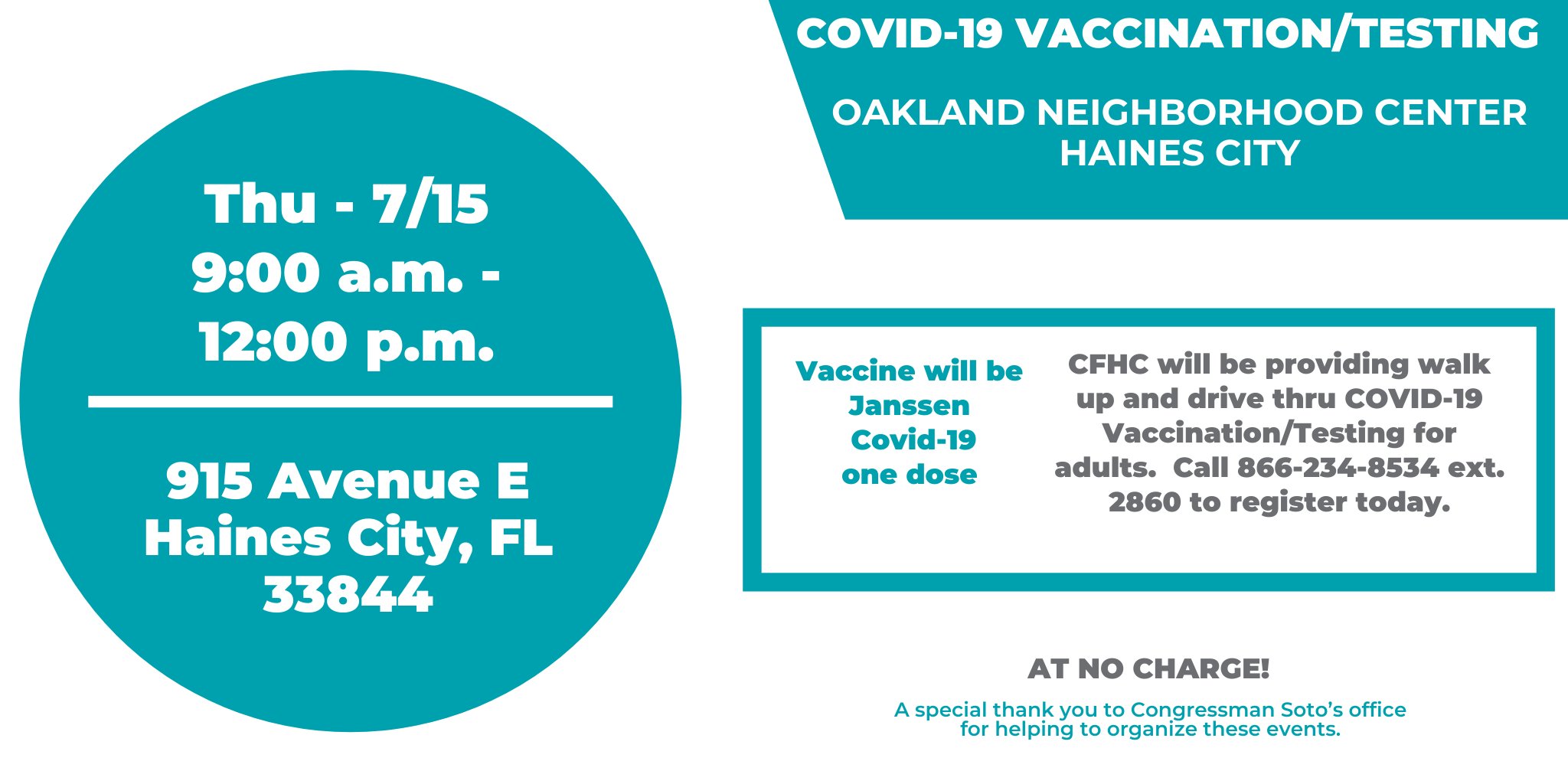 City Of Haines City On Twitter Free Covid 19 Testing And Vaccinations Will Be Available On Thursday At The Oakland Neighborhood Center 915 Ave E Central Florida Health Care Will Be Providing Walk Up